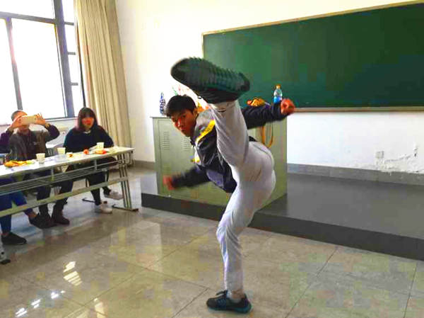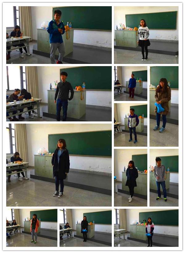 活动主要以游戏的方式进行,有的同学在活动时间前便早早来到现场帮助准备。丰富的小游戏让大家在收获礼品的同时收获了自信与友谊。活动中最精彩的莫过于一开始的击鼓传花,被传到表演节目的同学们毫不怯场,纷纷拿出了真本领,有唱歌的,有讲笑话的,还有表演魔术的等等。最精彩的是史秀中同学的武术表演,干脆的动作,凌厉的踢腿赢得了同学们一阵阵赞叹,气氛就这样越来越热烈。