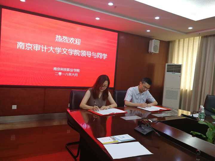 2018年6月8日下午,在校教务中心副主任丁国勇和av电影 副院长王军的带领下,av电影 汉国教系主任栗学英、副主任丁存越与十几位学生前往南京科技职业学院参观,在热烈友好的气氛中,南审av电影 和南京科技职业学院国教院正式签订了实习基地协议。