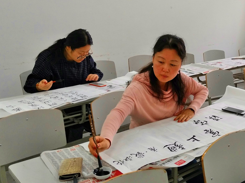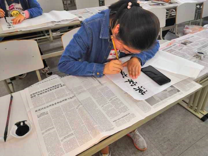 在“古诗词硬笔书写和软笔书法”比赛现场,近百名决赛选手汇集在两大赛场,按照大赛组指定的内容,挥毫泼墨,一副副作品耀然纸上,或大气磅礴、或隽永俊秀,特别是书法比赛现场,可谓是翰墨飘香,丹青溢彩,古诗词的书写与书法,既展现着师生风采,也推动着中华传统文化的传承。