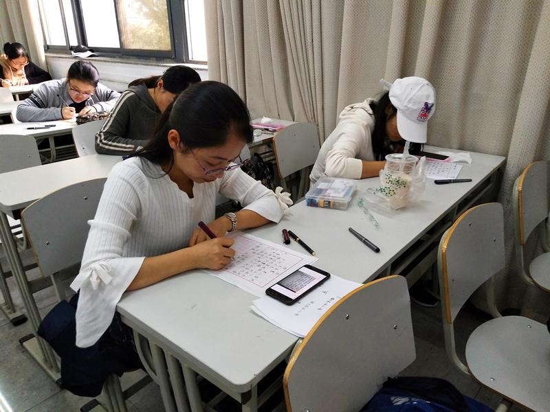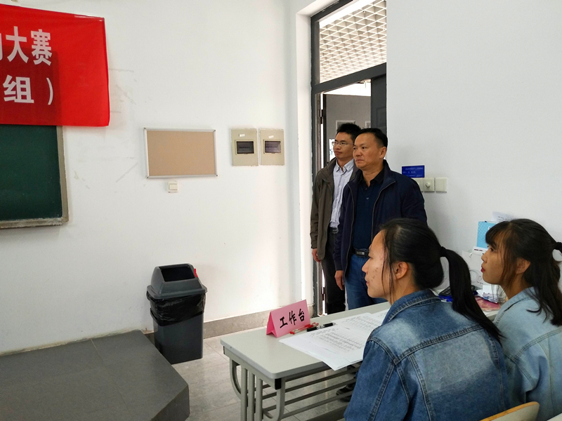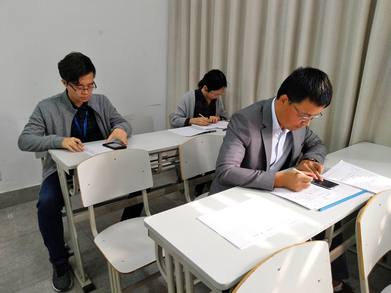 在10月24日下午的决赛现场,校语委办公室刘顺主任、av电影 王军副院长亲临决赛现场视察“古诗词与语言文字常识测查”、“古诗词硬笔书写”、“古诗词软笔书法”、“学生组古诗词诵读”、“教工组古诗词诵读”五个赛场的比赛情况。