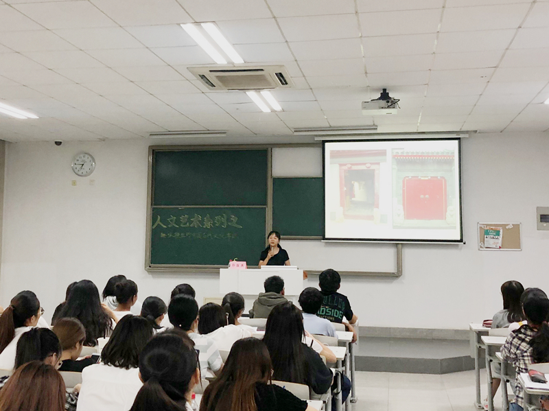 紧接着,郭敬燕从同学们身边的文化——南审校园入手,发现生活中的文化,将“习焉不察”的事物进行历史文化的挖掘。郭敬燕依次列举了“先锋书店”前门槛的两边、“梅花山”下的石墩,将两件并不起眼的事物联系起来,为同学们细致地解释了“门当”与“户对”的含义。同时,由此引出了它们的作用,即祈福与辟邪,也象征着家庭的显贵与否。