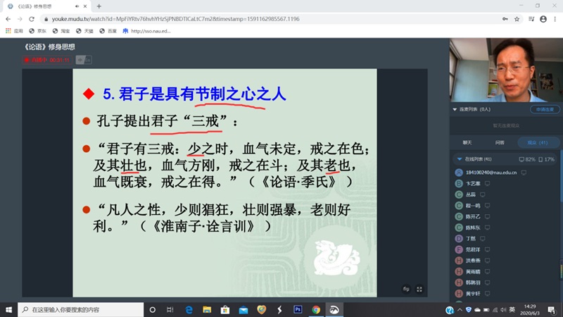 6月3日下午,我们有幸请到av电影 的张成进老师在南审直播平台为大家带来“《论语》修身思想”这一精彩讲座,从修身这一方面来解读《论语》这一经典。