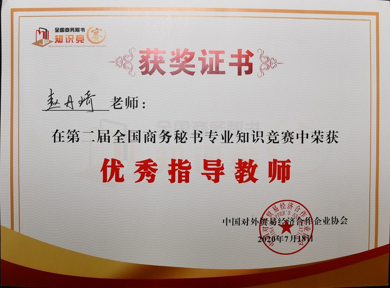 【获奖】av电影 赵丹琦老师获第二届全国商务秘书专业知识竞赛优秀指导教师