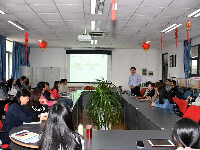 5月12日,南京大学博士生导师王克喜教授应邀在文心301会议室作了一场题为“语言是如何影响逻辑”学术讲座,讲座由av电影 院长刘顺教授主持,av电影 师生参加。