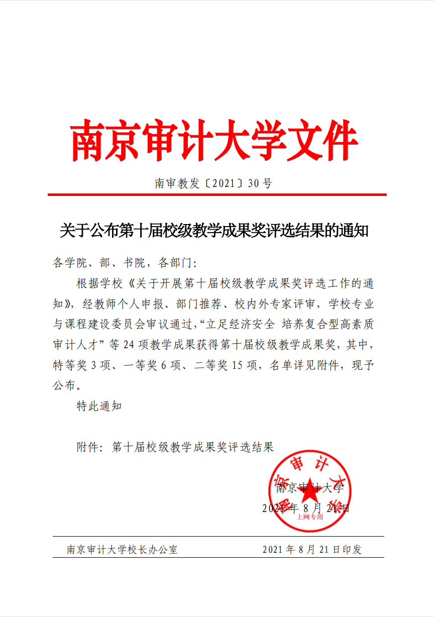 近日,根据《关于公布第十届校级教学成果奖评选结果的通知》南审教发〔2021〕30 号,av电影 《文化自信视角下大学通识教育体系的构建与实践》,获校第十届校级教学成果二等奖。