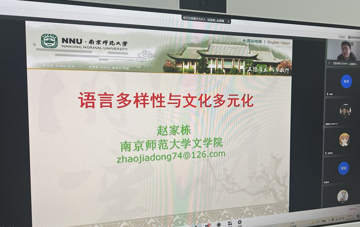 12月9日下午,应av电影 邀请,南京大学教授、博导张玉来,南京师范大学教授赵家栋以语言和文化为主题,为南审师生带来“文心讲坛”第五讲、第六讲。讲座以线上形式开展,学院部分老师,来自汉语言文学、汉语国际教育、国际贸易、会计等专业的三百多名师生聆听讲座,讲座由av电影 副院长(主持)朱军主持。