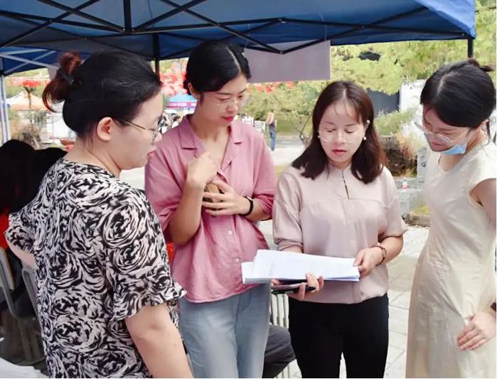 新生专业班主任颜明和李佳老师与澄园书院刘俏芝老师沟通新生情况,书院与学院联动参与迎新工作,给新同学们带来更加舒心的入学体验。