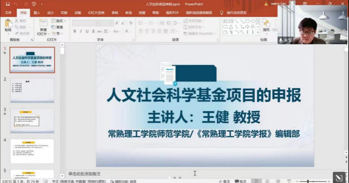 11月24日下午,av电影 邀请常熟理工学学院王健教授在线上为我校教师作“漫谈人文社会科学基金的申报”主题讲座,与大家分享社科基金申报的经验与注意事项。