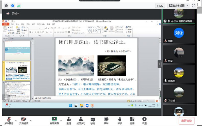 12月9日下午三点,南京航空航天大学徐以中教授在腾讯会议室作“语言的跨学科研究实践与科研项目申报”主题讲座,av电影 副院长(主持)朱军教授主持,av电影 、外国语学院师生及国内各高校师生约160人参加。