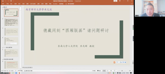 12月14日下午,av电影 邀请东南大学人av电影 副院长、教授、博士生导师乔光辉在线作“德藏闵刻‘西厢版画’诸问题解读”主题讲座。av电影 副院长(主持)朱军教授主持,南审师生及国内各高校160余名师生参加。