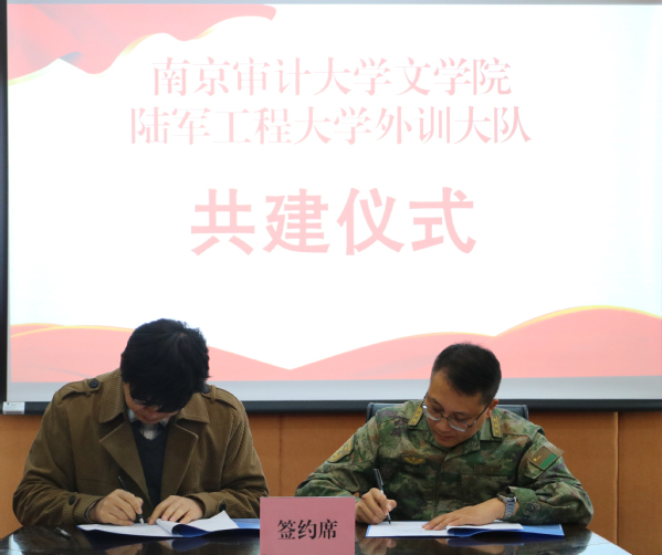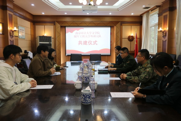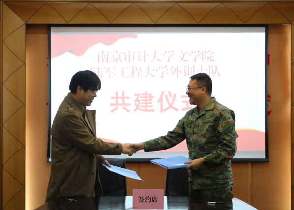为进一步提高人才培养质量,深化学生综合素质教育,4月25日上午,南京审计大学av电影 与陆军工程大学外训大队举行“校外实习实践基地”签约共建仪式。南审av电影 副院长(主持)朱军教授、汉国教系系主任颜明副教授、毕业生代表徐扬赴陆工大校区参加了活动,陆军工程大学外训大队大队长和健、政治委员葛在、汉语语言文化教研室主任郭长荔、教员佘飏对av电影 一行表示欢迎,双方展开了深入交流,并完成了签约。