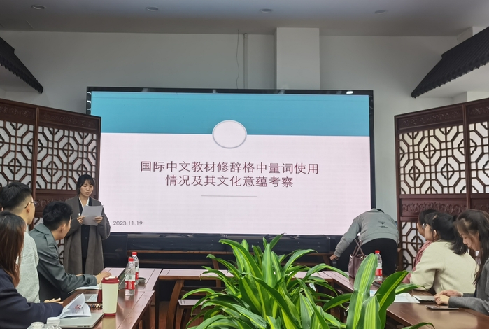 11月19日,2023年江苏省研究生科研创新实践大赛·国际中文教学技能暨中华才艺大赛系列活动中的研讨会环节,即“国际中文教育讲好中国故事的理论与策略研究”专题研讨会在江苏大学召开。该会议由江苏省文学类研究生教育指导委员会主办,江苏大学研究生院、江苏大学av电影 承办。龙耶欣同学参会并宣读论文《国际中文教材修辞格中量词使用情况及其文化意蕴考察》。