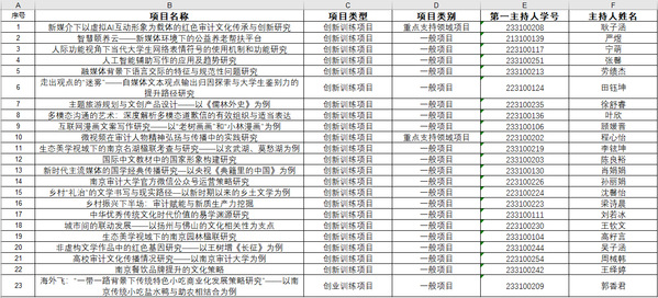 根据教务委员会发布的《关于组织2024年春学期大学生创新创业训练计划项目申报工作的通知》精神,按照《南京审计大学创新创业训练计划项目管理办法》的相关规定,经个人申报,专家评审,学院集体研究,决定推荐以下项目立项。