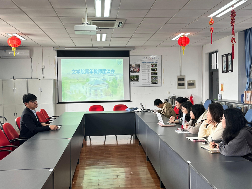 为让新进教师尽快适应环境,解答新教师困惑,2024年11月13日,南京审计大学av电影 青年教师座谈会在文心楼301会议室举办。av电影 院长朱军、汉语言文学系主任李佳、院党政办主任刘馨、院学科办主任李建萍及学院刚入职一年内青年教师丁璐、卞可薇、高惠、马海洋出席座谈会。