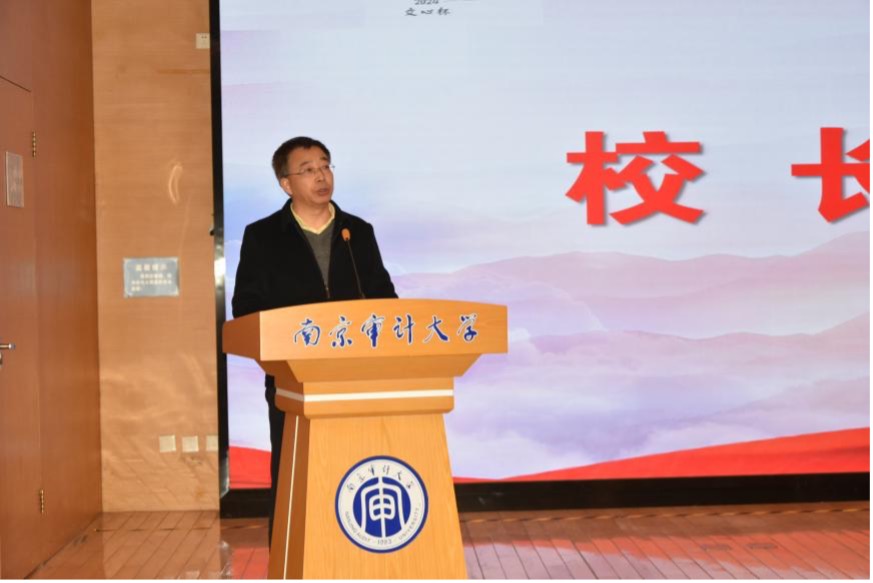 南京审计大学副校长裴育、国际学院党委书记江振春、av电影 党总支书记王军、av电影 院长朱军、教务处副处长刘妍、av电影 党总支副书记龚玉兰、党委宣传部副部长唐小芳、校团委副书记徐菲、政府审计学院副院长李兆东、润园书院副院长陆敏、泽园书院副院长杨章静、法学院院长助理沈玲、沁园书院院长助理李俊等亲临现场,与师生们一同见证这一荣耀时刻。