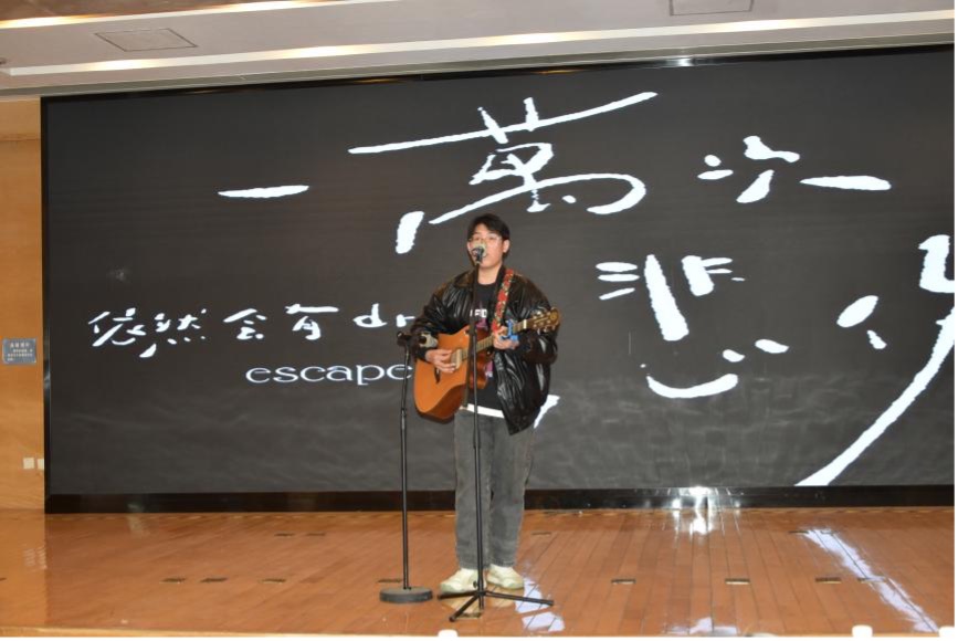 “文心杯”写作大赛颁奖典礼表演环节精彩纷呈。杜艳和洪铭远的《天外来物》歌声动人,如星芒暖场。贾天泺、马敬然、孟炎君、李倪四位同学的《琼姿舞影》舞姿灵动,尽显古典美。洪铭远的吉他弹唱《一万次悲伤》,沙哑嗓音述青春,音符拨人心弦,给大赛增添别样魅力。