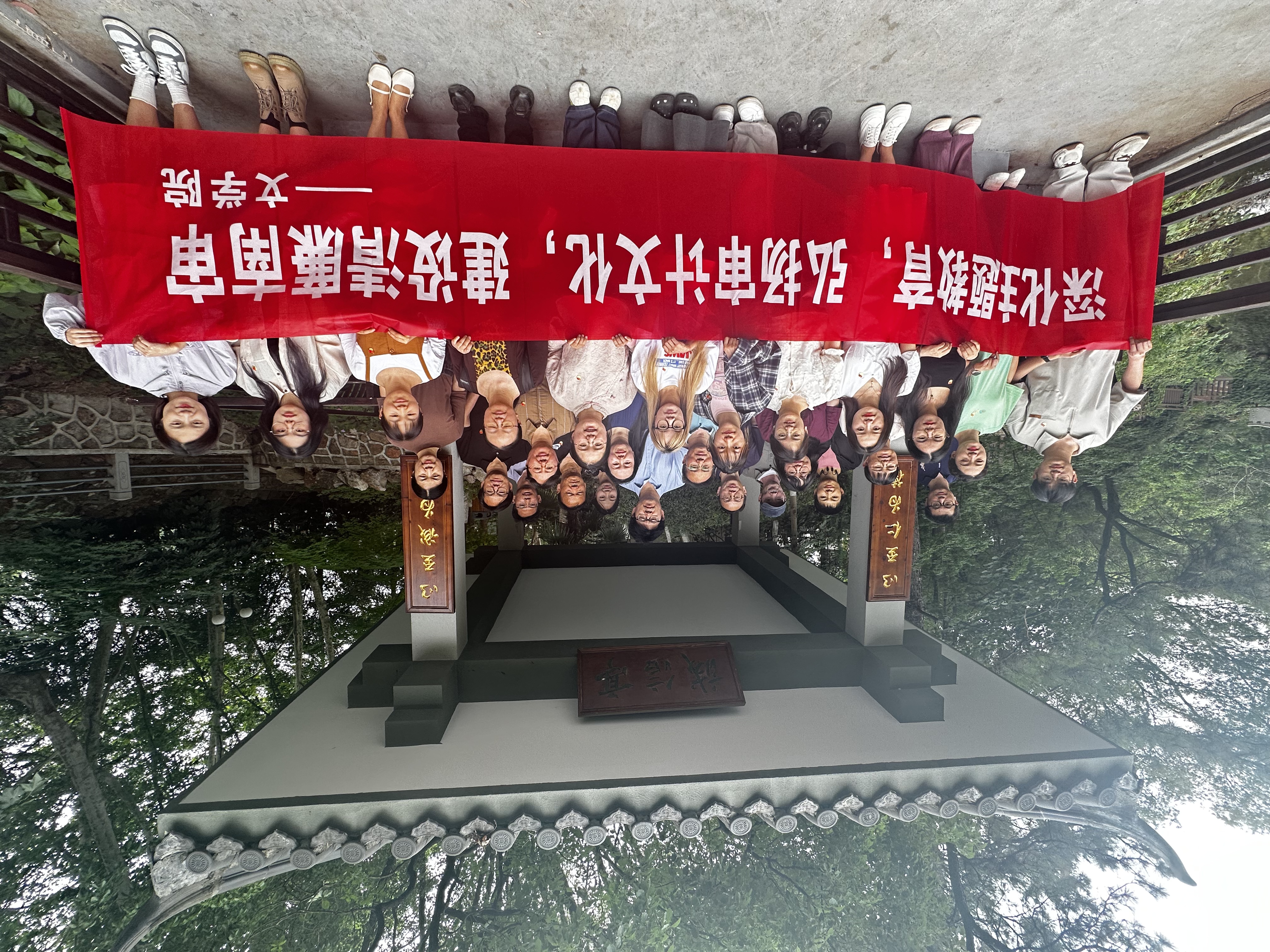 步入廉园,党员们首先在 “獬豸” 雕塑前驻足。这头象征 “明辨是非” 的神兽雕塑凝视着园中景致,仿佛在警示众人坚守公正底线。行至诚信亭,楹联上“以至诚为道,以至仁为德”的古训与“成由勤俭破由奢”的警言相映成趣,发人深省;穿越莲桥时,大家对 “廉桥” 与 “连桥” 的谐音寓意感触颇深 ——桥身既连接着园中景致,更象征着教师与学生、与教育事业的 “心手相连”,唯有恪守廉洁,方能让教育初心始终与育人使命同频共振。