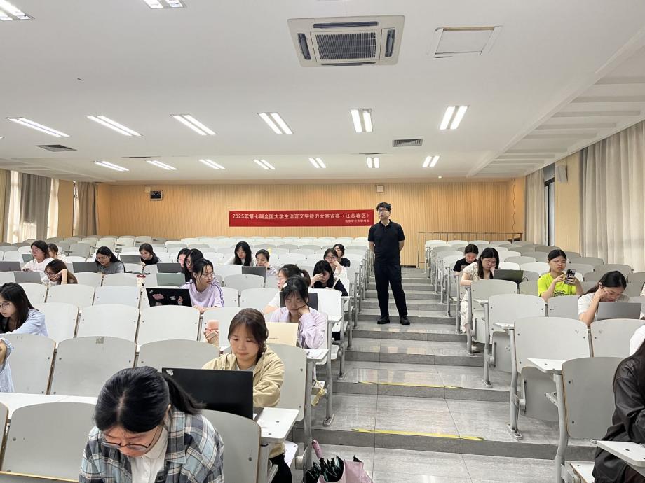 2025年6月7日,第七届全国大学生语言文字能力大赛江苏省赛如期举行。南京审计大学av电影 作为协办单位,组织我校考生参赛。本次大赛吸引了全校180余名学生踊跃报名,在竞秀楼第一报告厅集中参赛人数达120余人,充分展现了我校学子对语言文字能力的重视与热情。