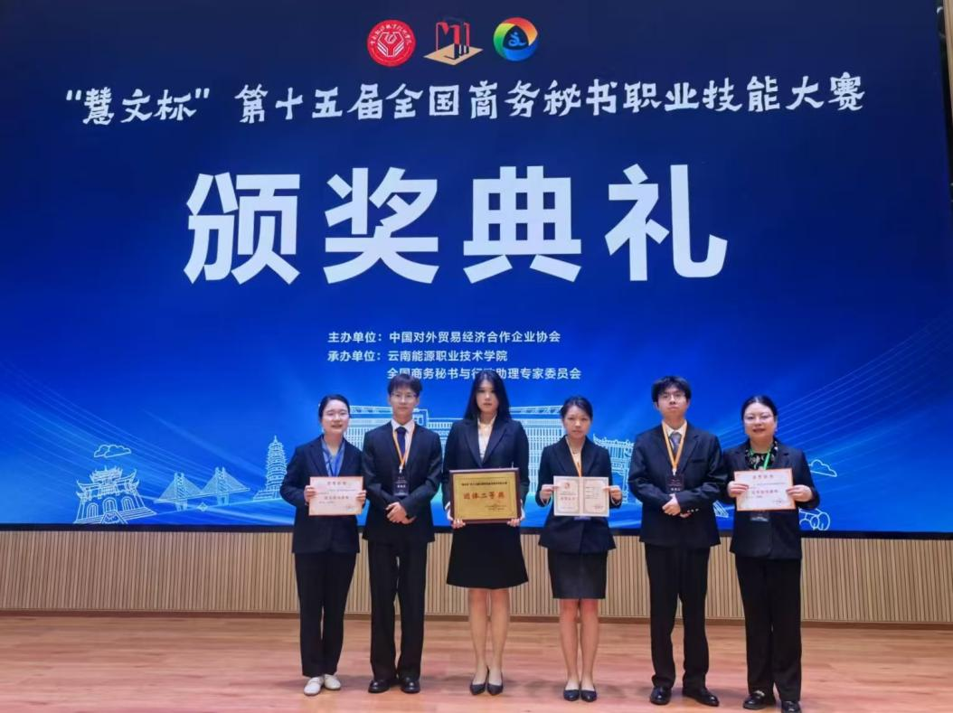 “慧文杯”全国商务秘书职业技能大赛是由中国对外贸易经济合作企业协会主办的全国性赛事,旨在深化秘书专业教育教学改革,提升学生的专业素养和职业技能。比赛项目涵盖专业技能、实践能力和综合素质的考察,自创办以来已成为连续举办时间最长、届数最多、规模最大且影响力持续增长的全国性秘书专业大学生职业技能赛事。av电影 代表队克服专业跨度大、新赛项零经验等困难,在此次赛事中交出了一份优秀的答卷,充分展现了AI时代av电影 学子的创新性与可塑性。