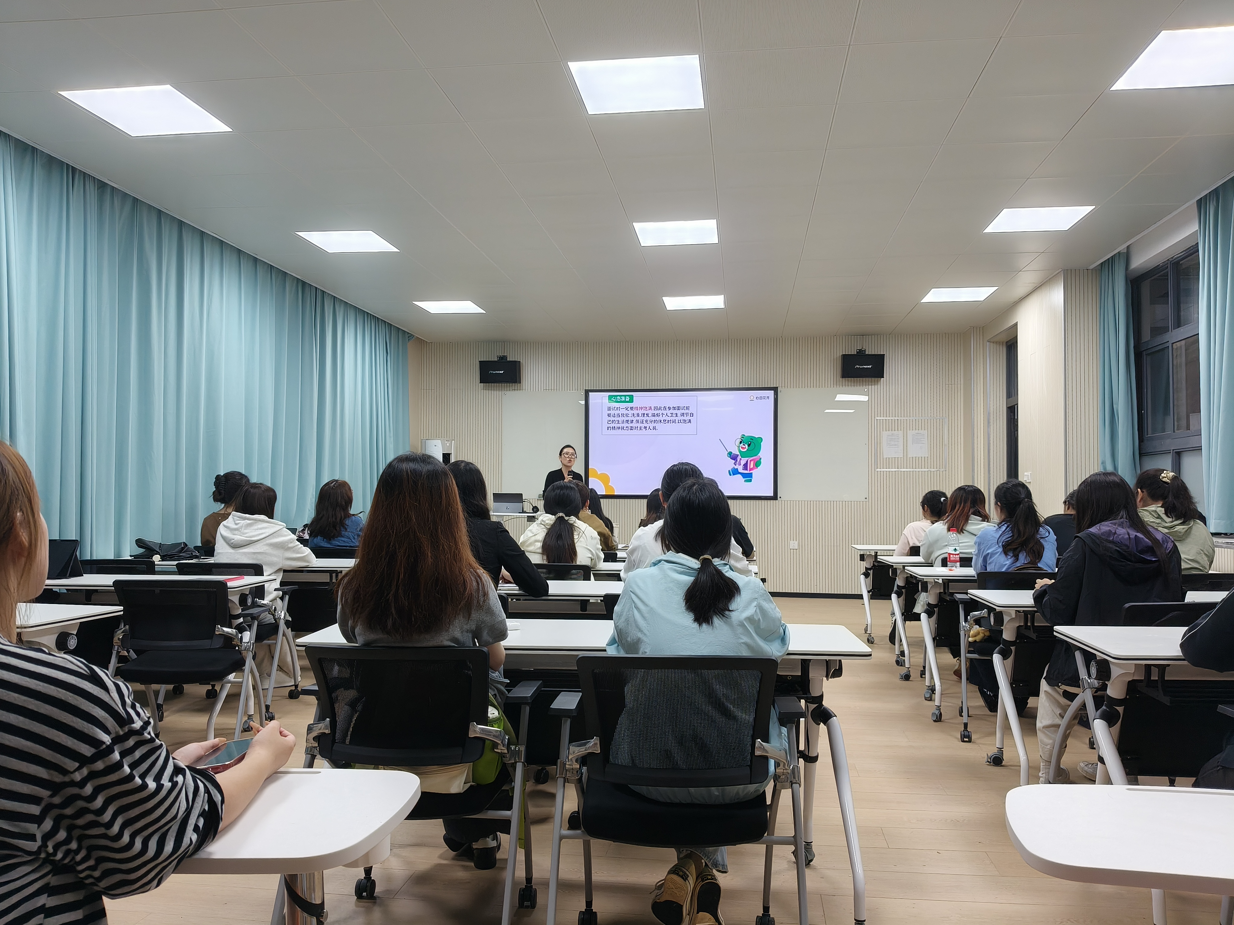 9月26日,为帮助av电影 学子精准把握求职先机、全方位提升核心竞争力,一场以“校企联动,职引未来”为主题的求职经验分享会在文心楼103室举办,此次活动由av电影 董琳钰老师主持。