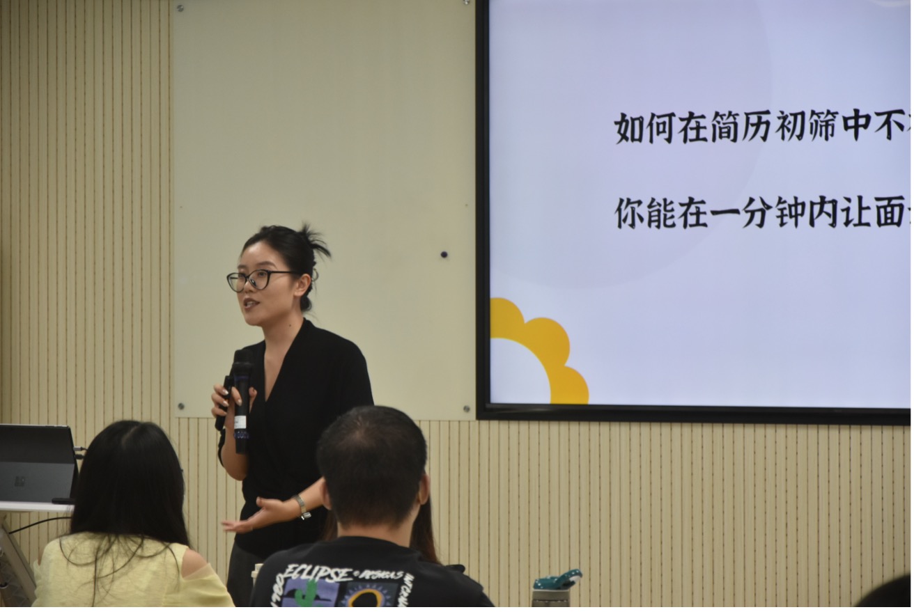 简历制作环节,卢校长也给出了实用的建议,她结合优秀简历展示,详细讲解了简历应包含的内容,为同学们制作简历提供清晰指导。