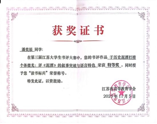 作为本届大赛的校级选拔赛承办单位,av电影 高度重视此项重要学科竞赛,将其作为学院特色“文心杯”写作大赛的主要赛道之一。从前期宣传动员、赛事组织、作品筛选到后期打磨,均进行了周密部署和精心安排。学院充分发挥其在文学评论、文本解读与学术写作方面的专业优势与教学特长,为参赛学生提供了全方位的支持,确保了推荐作品的高质量与竞争力。本次荣获省级奖项的作品均展现了南审学子深厚的文学素养与独到的批判思维。这些优秀作品的涌现,正是av电影 长期致力于培养学生人文精神、批判性思维与写作能力的集中体现。