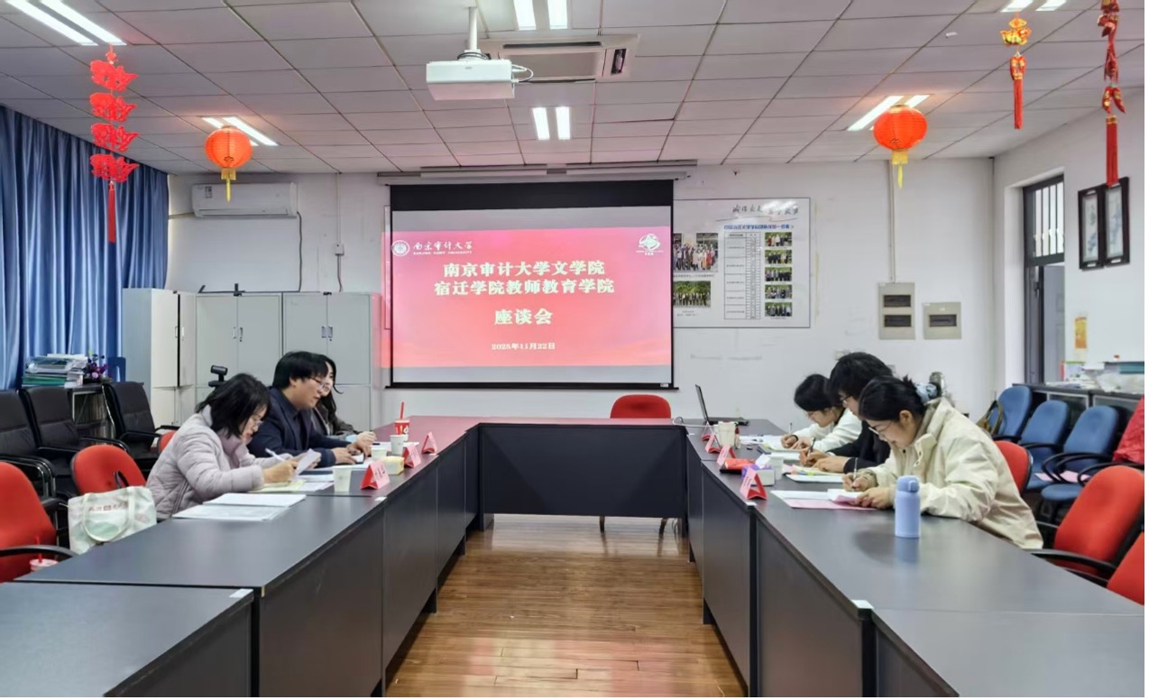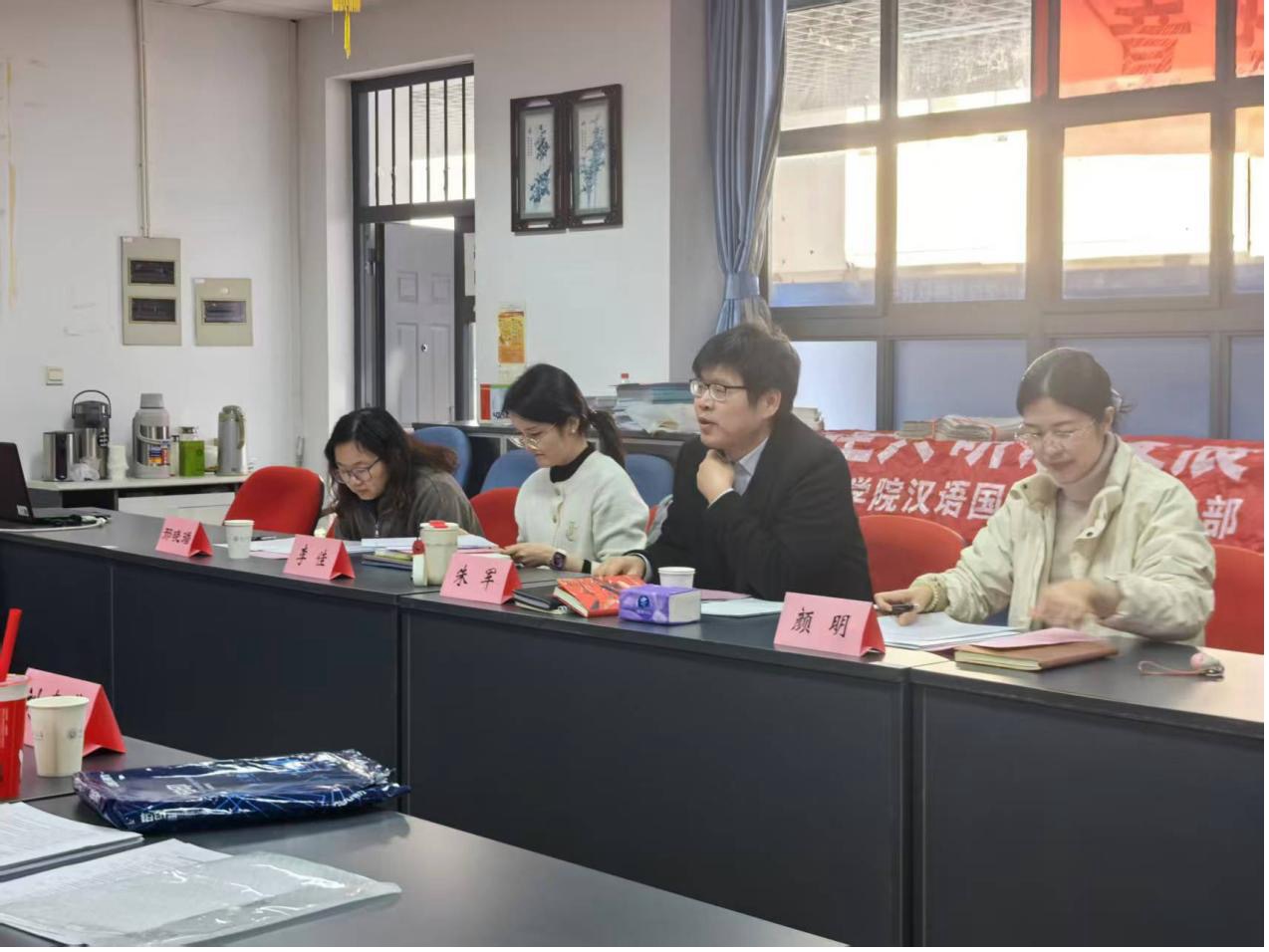 11月25日下午,宿迁学院教师教育学院副院长付春明一行来访我校av电影 ,旨在开展人才培养方案修订和实习实践教学工作的调研。双方于文心楼301会议室开展工作交流会,av电影 院长朱军、汉语国际教育专业系主任颜明、汉语言文学系主任李佳以及教务办主任邢晓璠出席交流座谈会,会议由颜明老师主持。