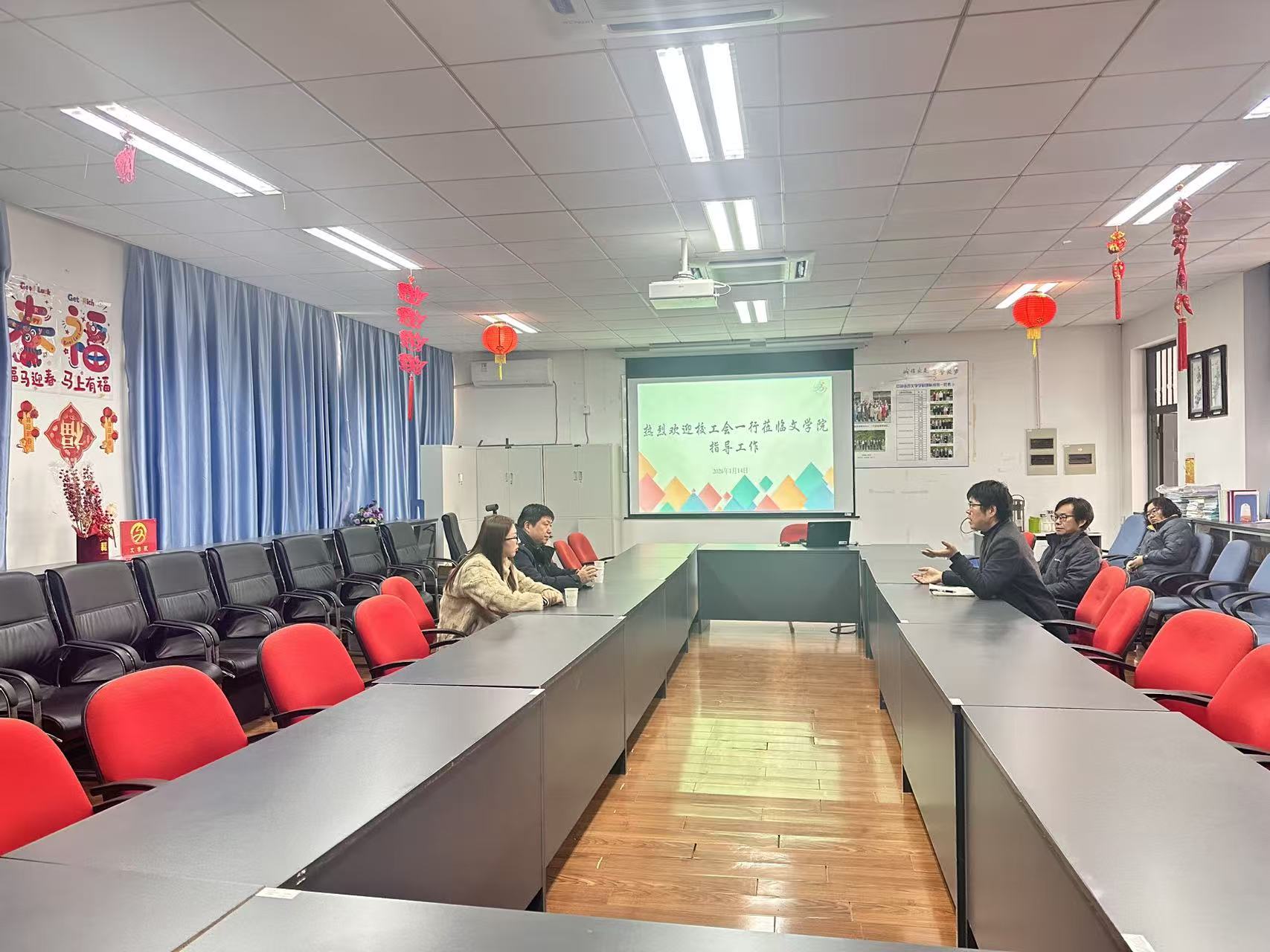 1月14日,校工会主席张武宁一行三人莅临av电影 开展调研,av电影 院长朱军、分工会主席罗如春、分工会副主席刘馨、教务办主任邢晓璠参加了调研。