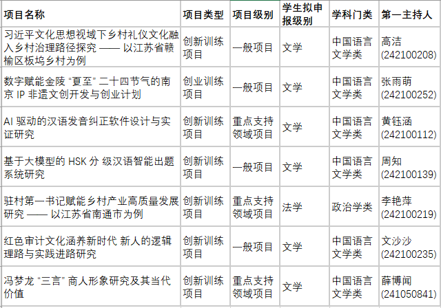 根据教务委员会发布的《关于组织2026年春学期大学生创新创业训练计划项目申报工作的通知》精神,按照《南京审计大学创新创业训练计划项目管理办法》的相关规定,经个人申报,专家评审,学院集体研究,决定推荐以下项目立项。